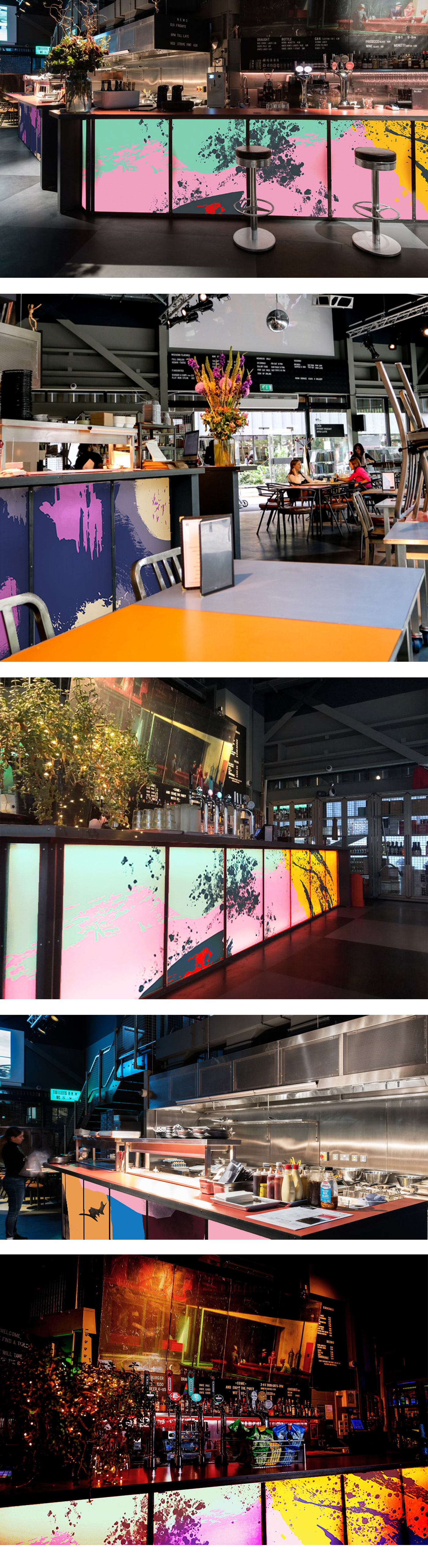 Andy Warhol Exhibition Event Graphics - Bar, DJ Booth, Food Station and Lectern Design